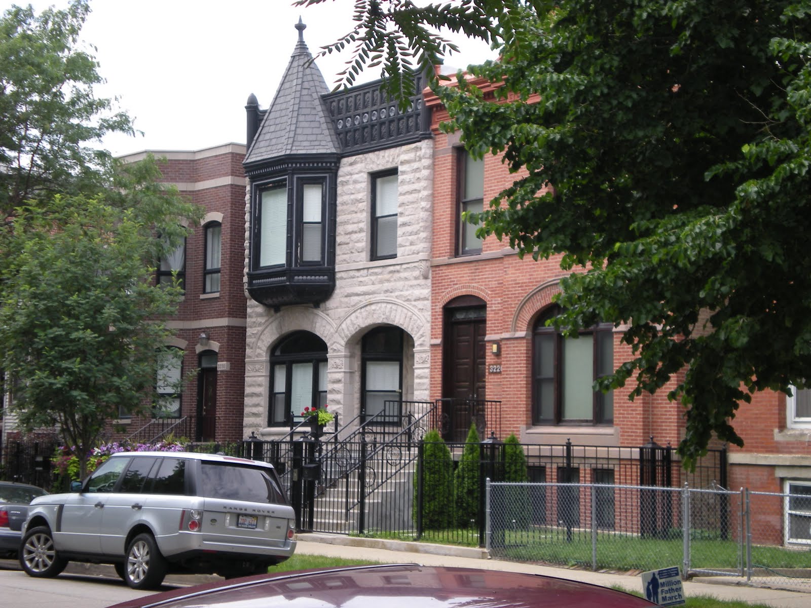This 'house' is actually a small group of row houses within the Calumet-Giles-Prairie District. According to the landmark plaque, these are the only row houses that Frank Lloyd Wright designed that were actually built. I would not have known these were Wright homes just by looking at them. To me they are more Louis Sullivan meets Tudor.